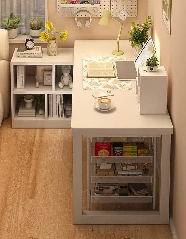 مكتب زاوية مع أرفف سفلية تنظيميه