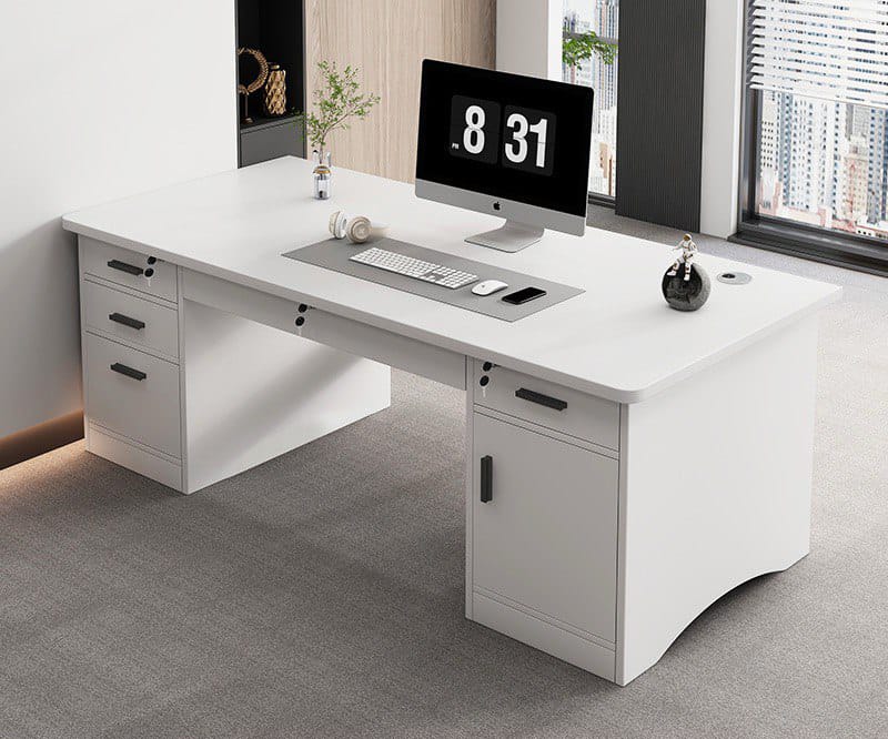 pcمكتب بأدراج جانبية وأفقية مع قفل مع مكان لوضع الـ